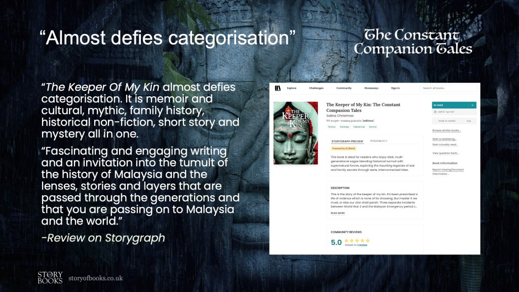 - The Keeper of My Kin (Paperback: Part One, Two & Three, Amazon UK, £9.99; Amazon SG, from $24; Waterstones, £9.99; Barnes & Noble, $9.99, and at major bookstores globally)